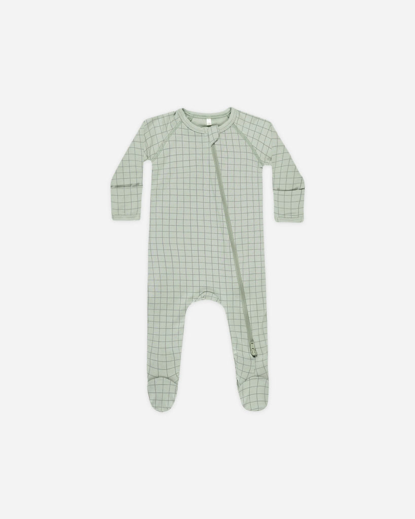 Quincy Mae Sage Grid Bamboo Zip Footie