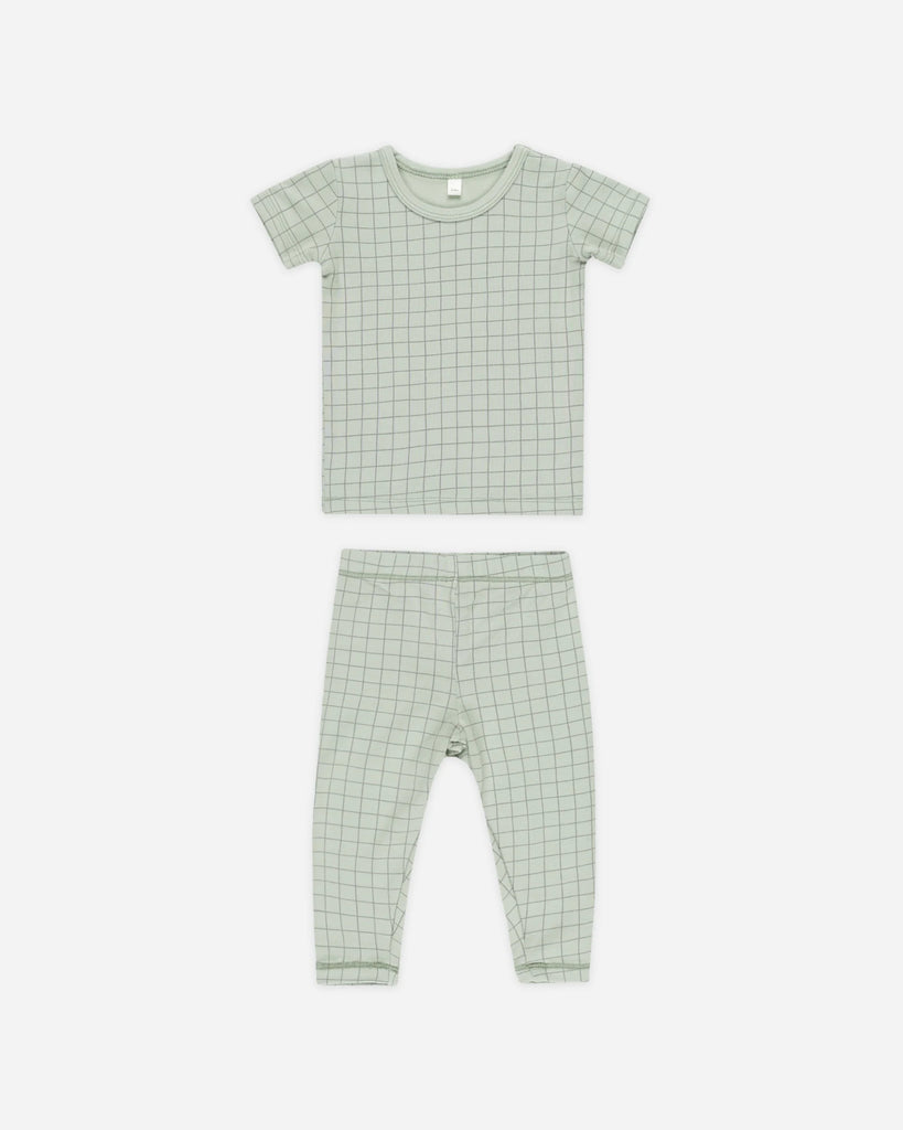 Quincy Mae Sage Grid Bamboo Short Sleeve Pajama Set