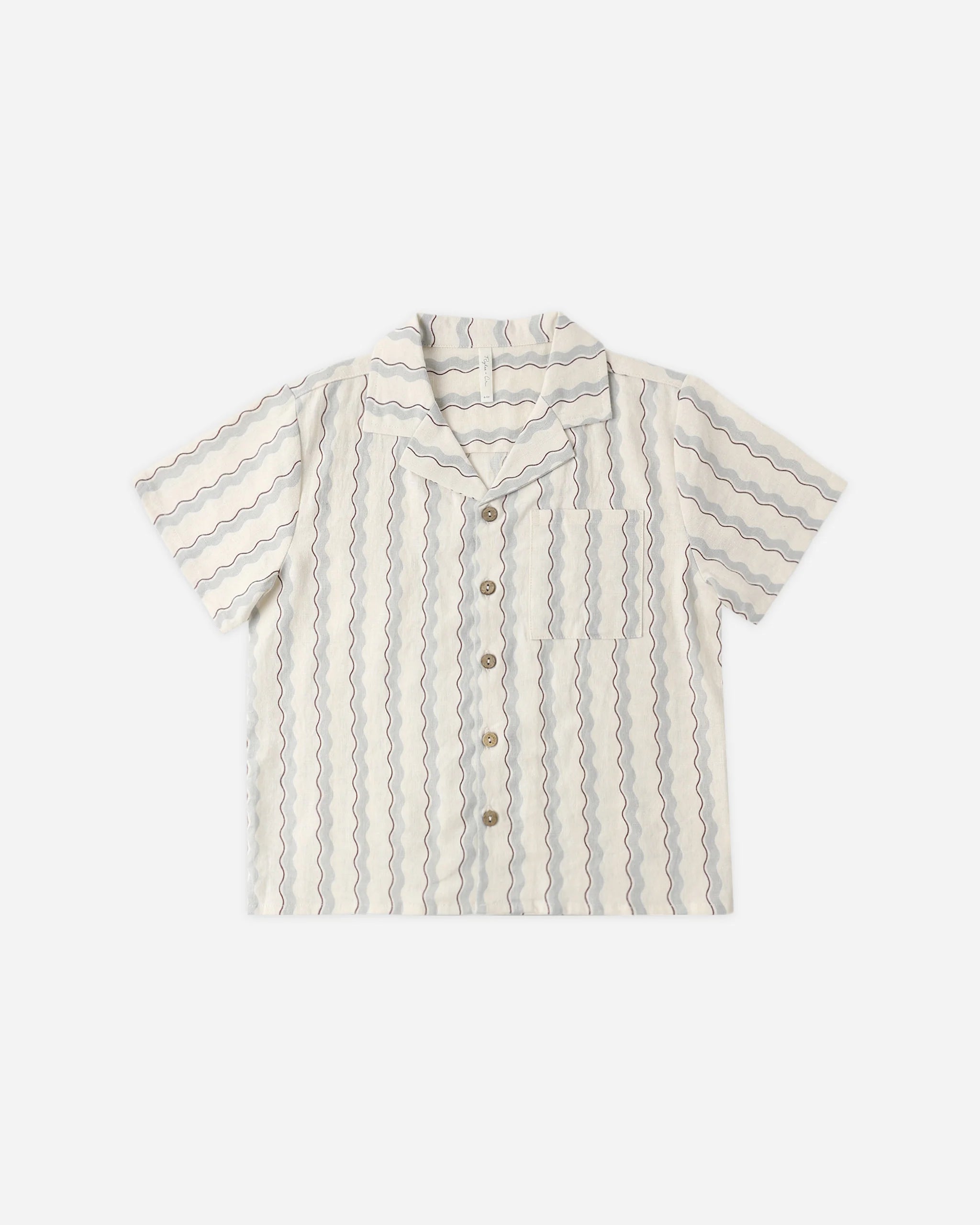 This button up boys shirt features a lapel collar and coconut buttons. Enjoy seaside days in this cool look.