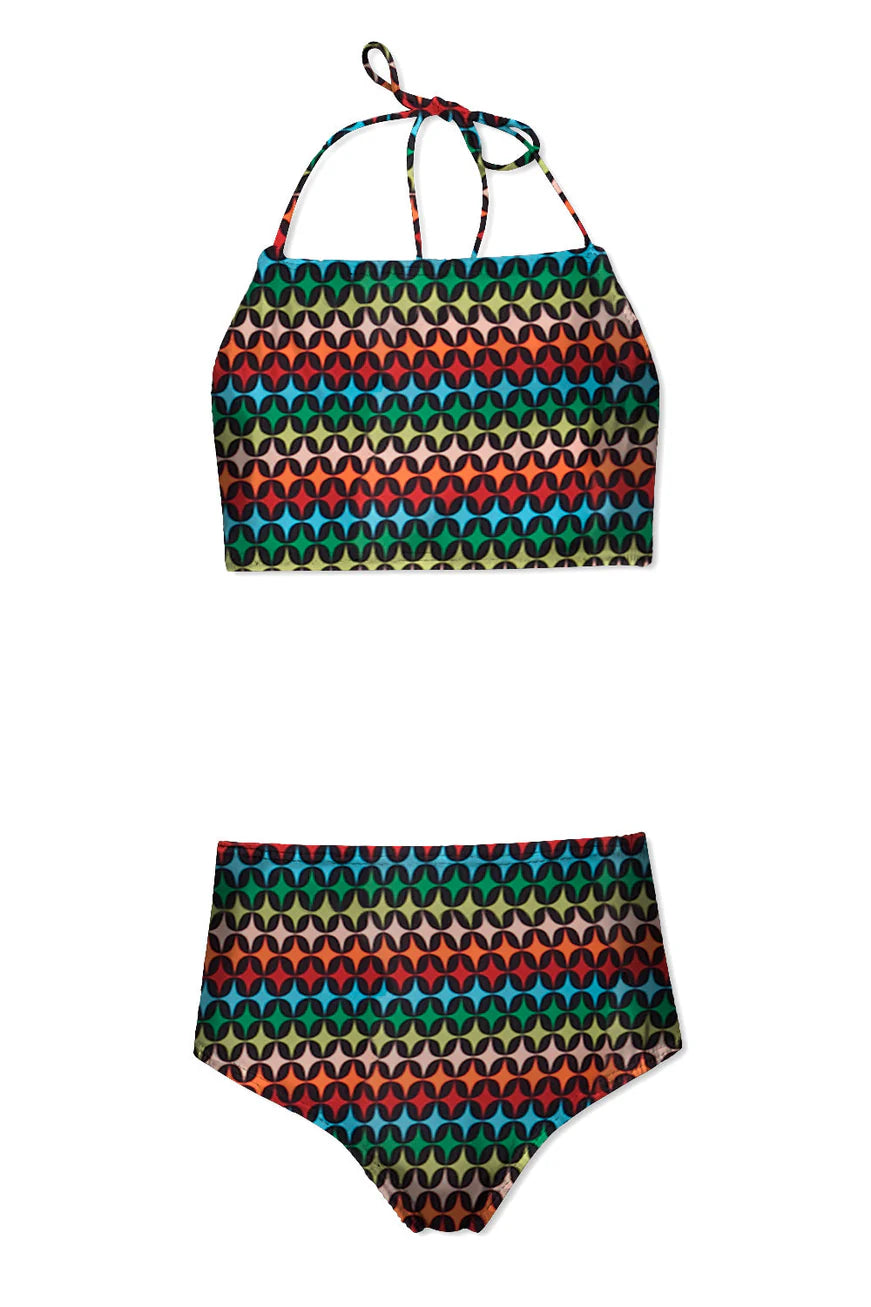 The Sunset Tropics Reese Bikini Set is perfect for girls who love to swim and play at the beach. With its modern design and silhouette, this set is ideal for little ones who like to be fashionable while enjoying the sun and water. Made with high-quality materials, this swimsuit is comfortable and durable, ensuring a carefree day of fun. Make your little one feel like a beach star with this unique bikini set!