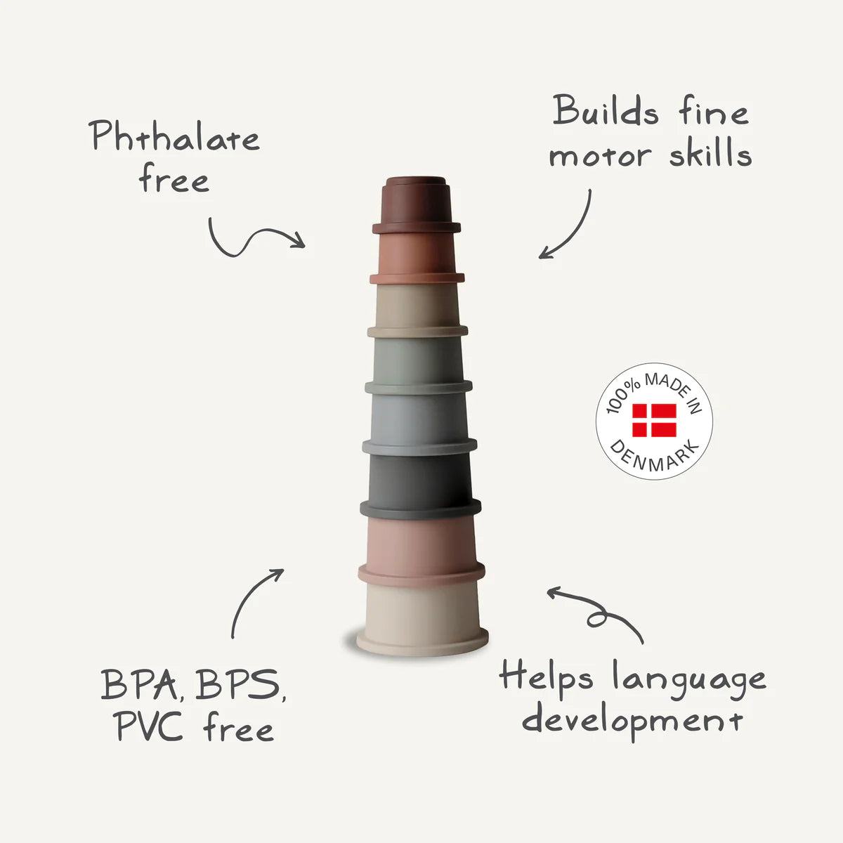 - Fully assembled Stacking Cups measure 3.25 x 3.25 x 8.6" (8.25 x 8.25 x 21.84 cm)