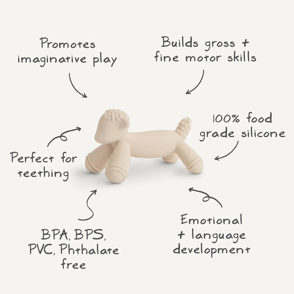 Shaped like a lovable animal friend and designed to soothe tender gums, our figurine teethers are both charming and functional. Made from non-toxic, food-grade silicone, these teethers are safe and gentle for baby's delicate gums. The playful design stimulates little imaginations and the compact size makes it easy for tiny hands to grasp, developing fine motor skills.