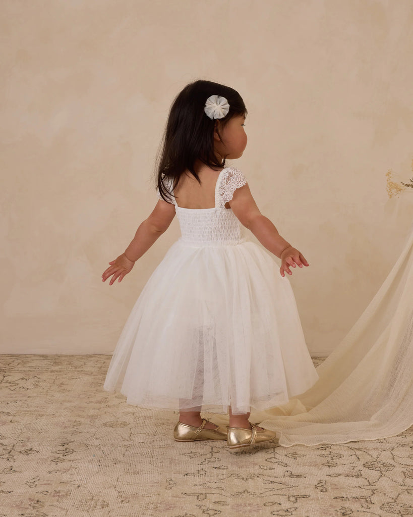 As pretty as it is classic, our Camilla Dress features a detailed lace overlay bodice, flutter lace sleeves, and a full skirt crafted in layers of tulle. The dress is fully lined to make the dress comfortable for your little one at any event.
