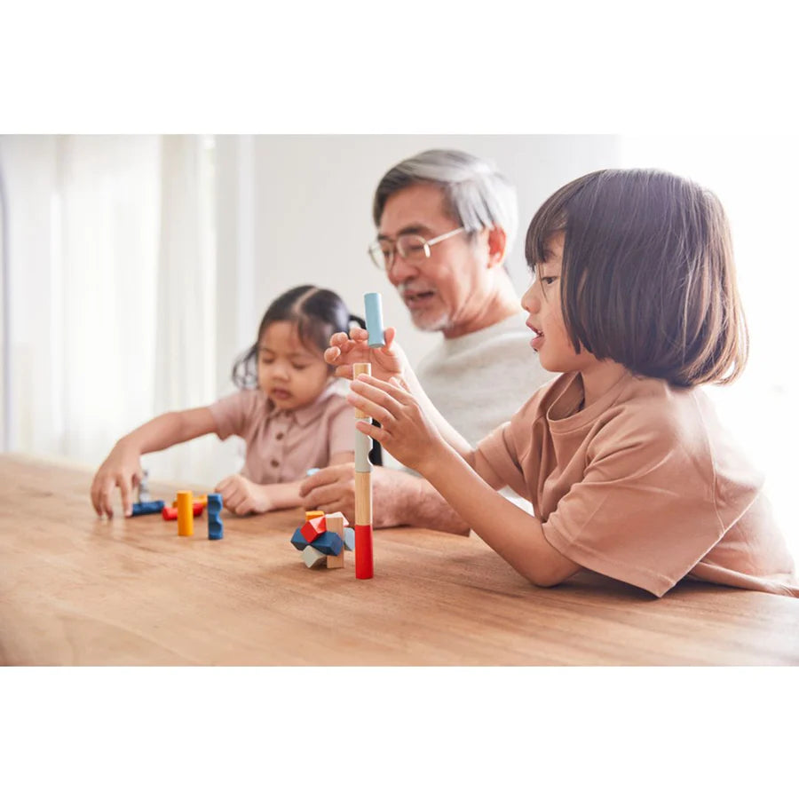 - Challenge your thinking and creativity with the PlanToys Log Puzzle