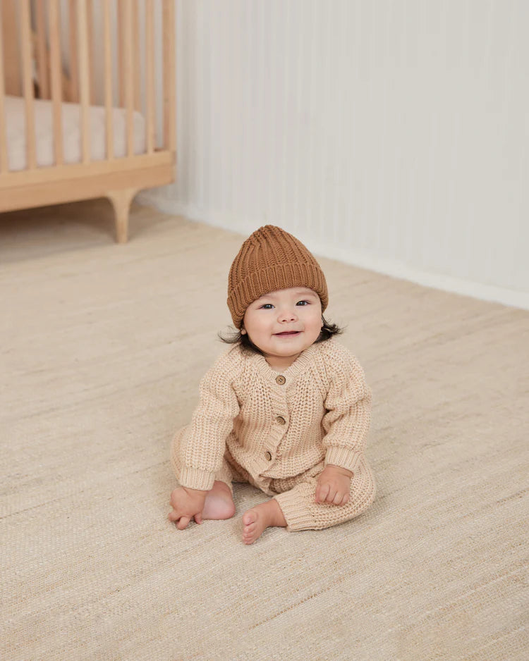 Chunky Knit Jumpsuit made of soft and chunky sweater knit, that is sure to keep you little one cute and cozy this fall. Featuring coconut buttons down the front and a relaxed fit.