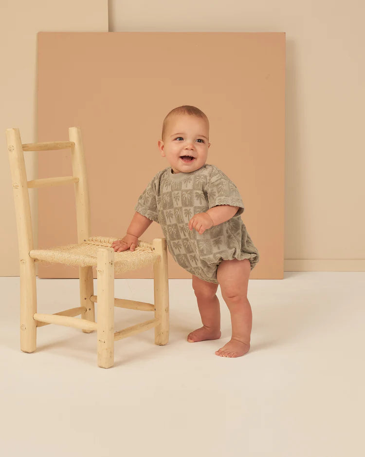 This Relaxed Bubble Romper will be a go-to this summer! Featuring shortsleeves, elastic leg openings and bottom snap closure to ensure easy changing.