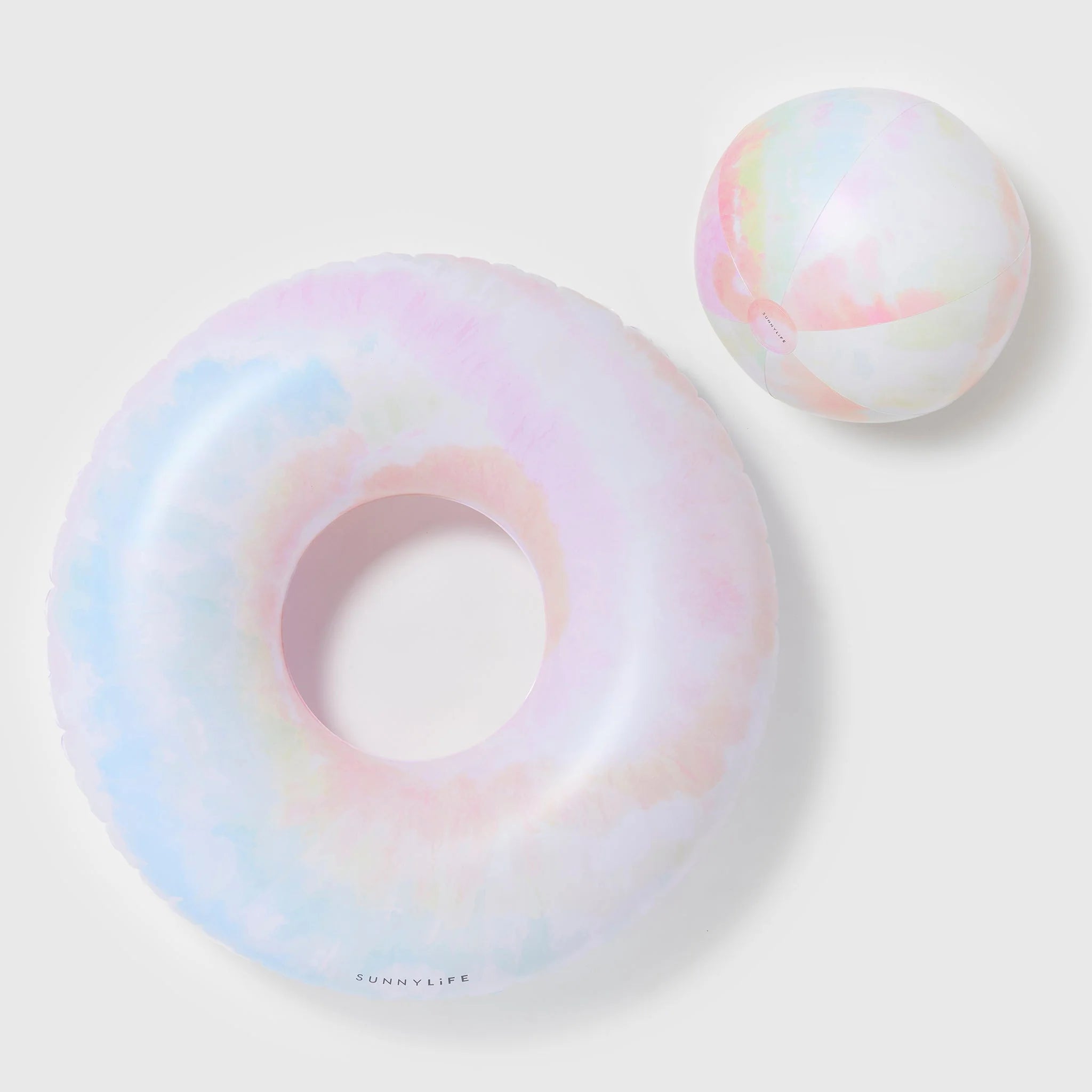 SUNNYLiFE Tube Pool Ring and Ball Set Tie Dye Multi