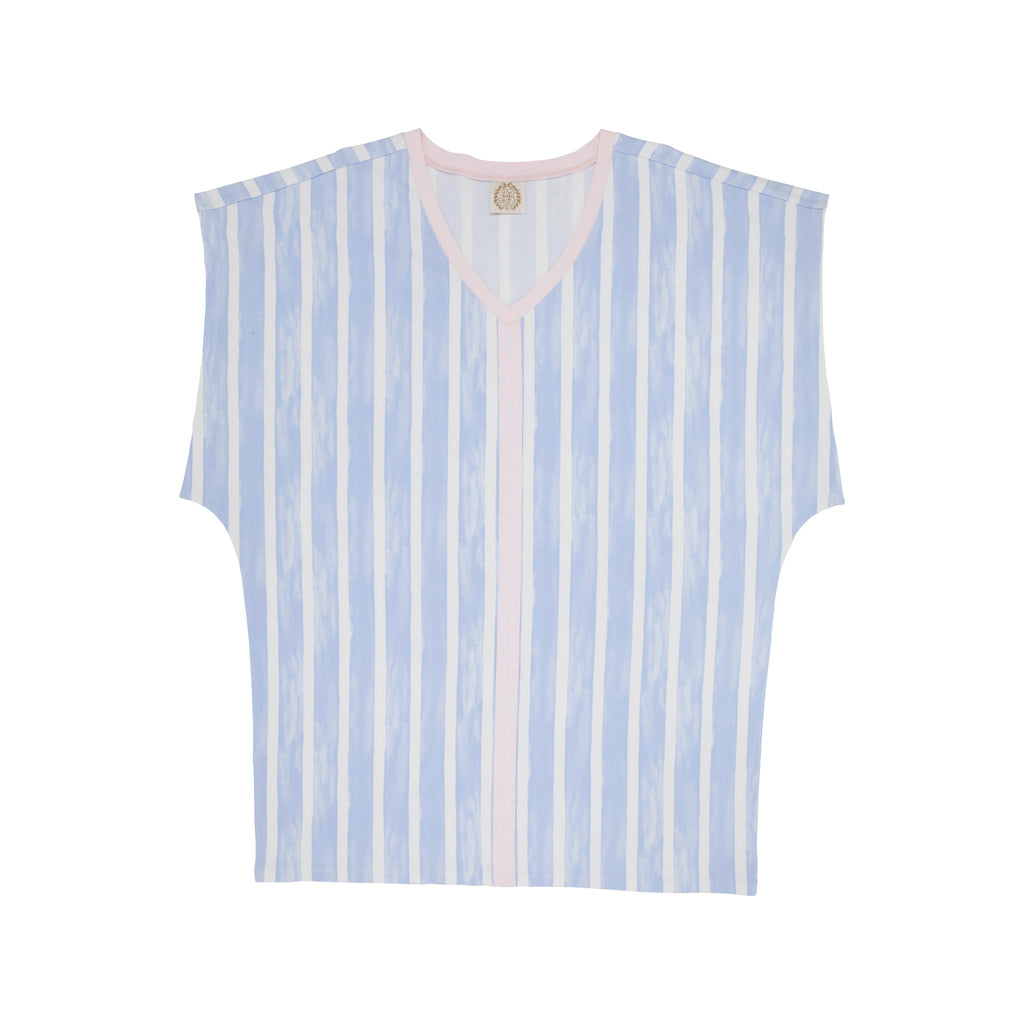 Our Colada Cover Up is the perfect addition to any bathing suit! You'll love our new Sea Wall Stripe with Palm Beach Pink print, and you'll love matching your little ones even more!